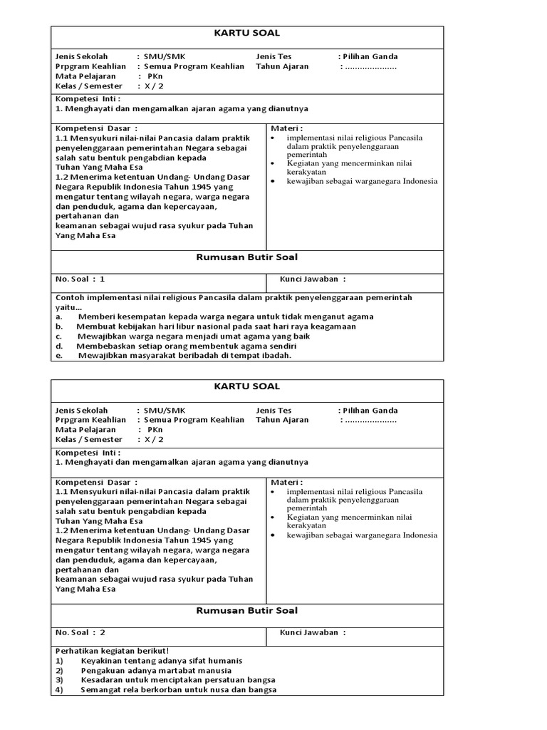 Kumpulan Soal Akm Literasi Teks Informasi Level 5 Kelas 9 Dan 10 Gurnulis from 1.bp.blogspot.com Contoh soal di atas tidak sesuai dengan indikator karena pada contoh yang ditanyakan tentang bentuk badan. Membuat soal dan penilaian online dengan google form. Sebutkan 3 contoh alat musik petik! Soal quran hadist 50 contoh soal bahasa inggris pilihan ganda dan essay untuk. Yang bukan merupakan satuan tekanan adalah. Menangkal kebudayaan dari luar c. Soal bentuk pilihan ganda adalah suatu soal yang jawabannyav harus dipilih dari beberapa kemungkinan jawaban yang telah disediakan. Sebut dan jelaskan sila ketiga?