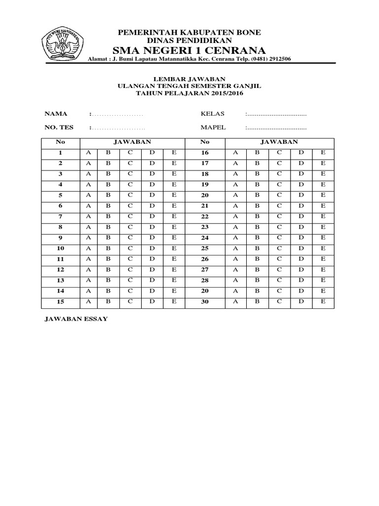 Tidak hanya terbatas dalam proses ujian, sebenarnya bapak/ibu juga dapat memanfaatkan lembar jawaban untuk kegiatan ulangan harian, ataupun digunakan dalam pelaksanaan tes bagi siswa. Selamat siang semuanya, kali ini saya share video tutorial membuat lembar soal pilihan ganda dan essay untuk ujian sekolah. Untuk menghasilkan cetak lembar jawaban yang akurat terbaca di komputer tentunya harus memakai mesin cetak dan mesin olah ljk dmr yang handal dan presisi. Lembar jawaban siswa merupakan salah satu instrumen yang dibutuhkan dalam pelaksanaan ujian siswa di sekolah. Posted by tu jurusan biologi fmipa in format lembar soal ujian bagi bapak/ibu dosen jurusan biologi yang membuat soal ujian uts/uas, untuk menyeragamkan format lembar soal ujian maka silahkan membuka template berikut ( doc dan pdf ).