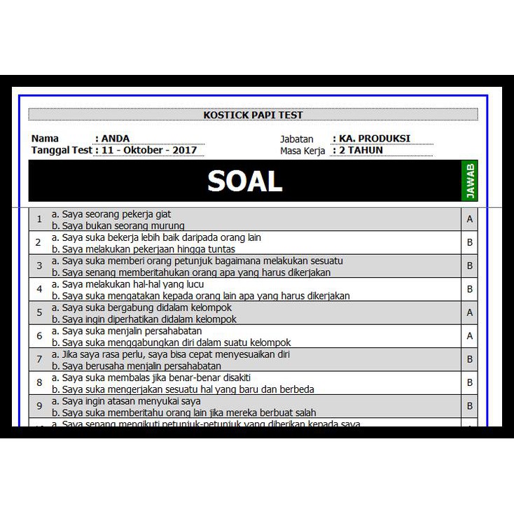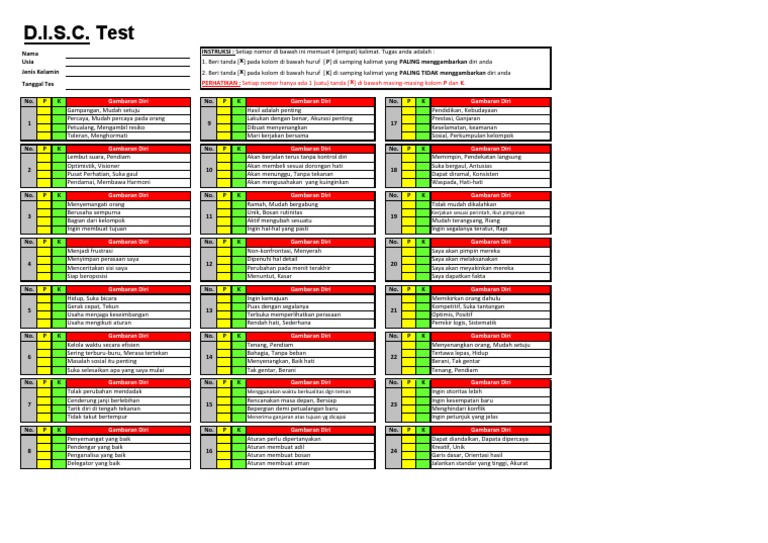 Tes disc/kepribadian ini adalah salah satu tes yang diberikan oleh perusahaan untuk melihat kepribadian kita. Tes disc terdiri dari 24 item, namun dalam lembar soal yang sekaligus lembar jawaban tidak tercantum nomer soalnya. Contoh soal tes disc kepribadian untuk tes kerja halo semuanya. Jika kamu mencari dokumen lain selain bank soal tes cpns pdf. Jual psikotes kepribadian papi kostick disc dan alat sumber.