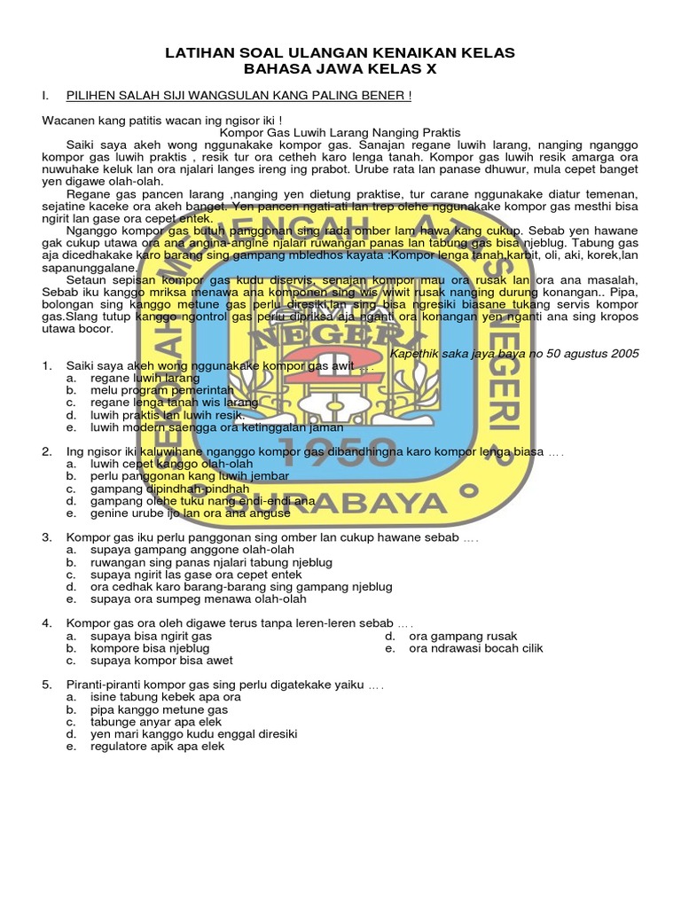 untuk "Ukara Ing Ngisor Iki Kang Kalebu Basa Rinengga, Yaiku... * - Latihan Soal Bahasa Jawa Kelas X : Ukara ing ngisor iki kang kalebu basa rinengga, yaiku."
